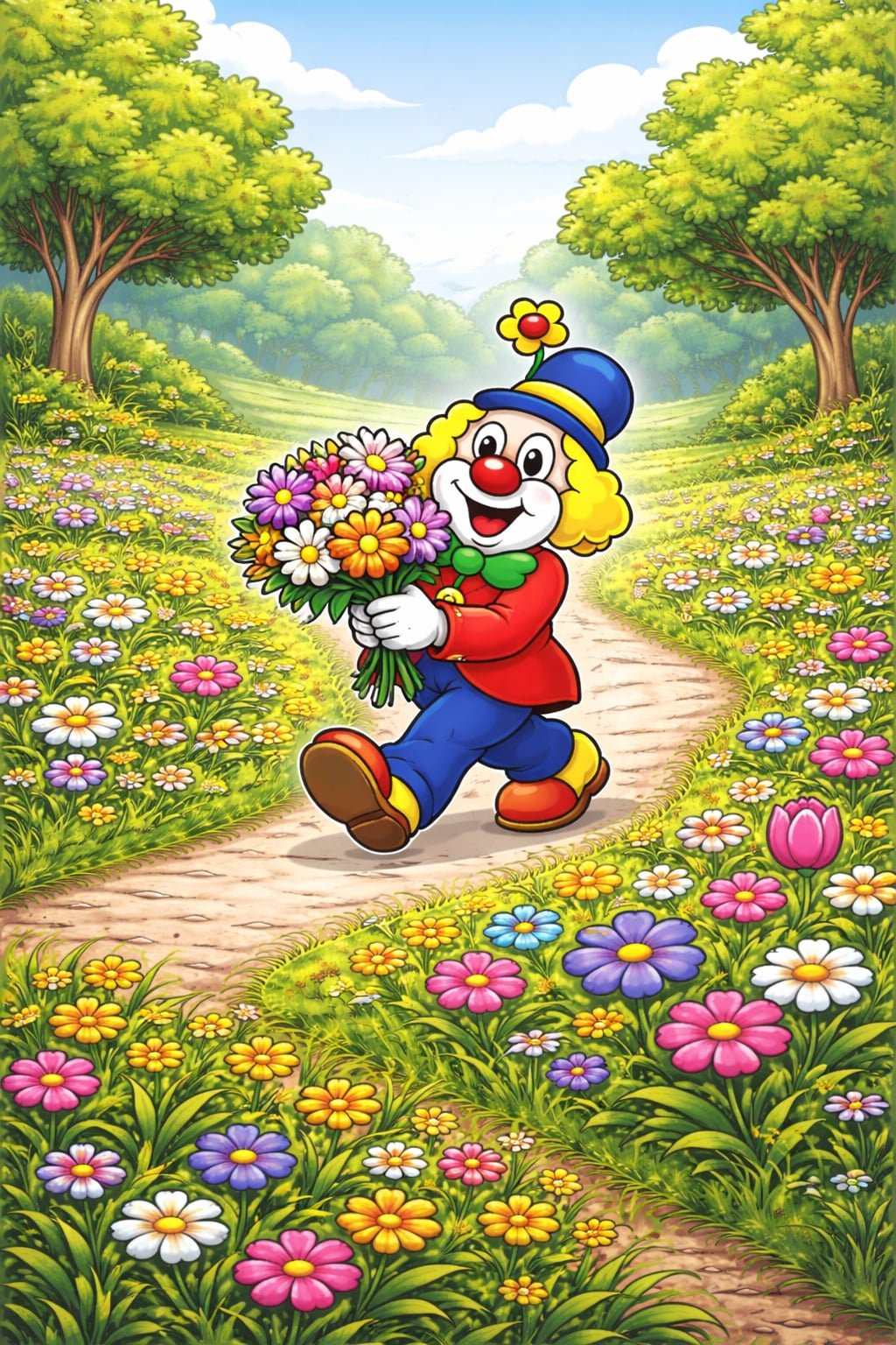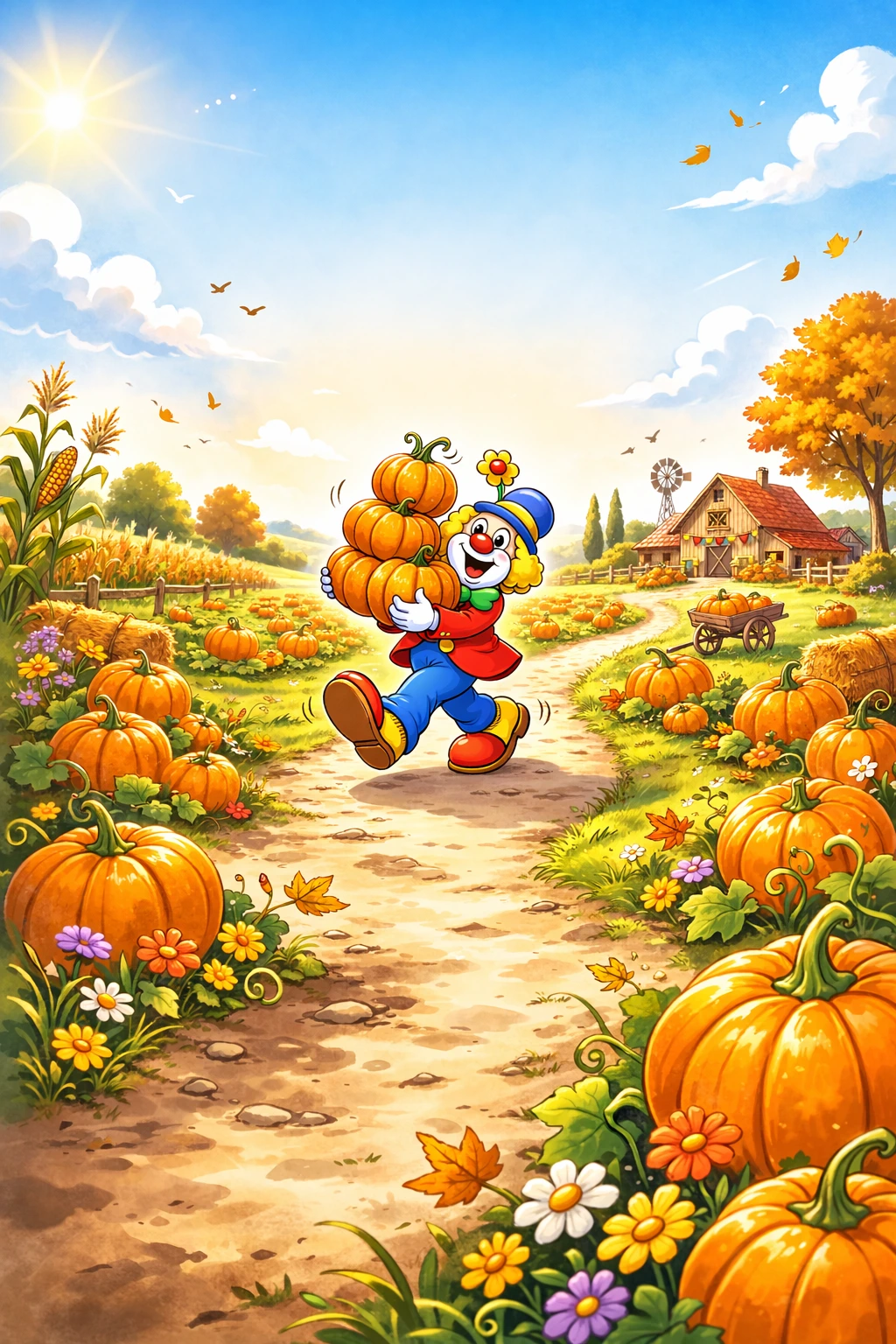 Naast de website ontwerp ik de flyers voor elke editie. Die zijn telkens volledig in het thema van de tocht uitgewerkt. De pompoentjestocht krijgt een clown in een veld vol pompoenen. De lentewandeling ademt lente. Elke flyer is een kleine illustratie die mensen nieuwsgierig maakt en uitnodigt om mee te stappen.